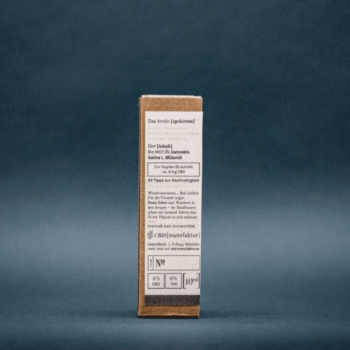 Die CBD Manufaktur hat für das [öl] als CBD-Öl mit 6% eine enge Kooperation mit europäischen und damit lokalen Bauern am Start und dabei vollziehen sich Aussaat, Ernte und Verarbeitung zu den üblichen hohen Standards in der EU. Zertifiziertes Saatgut und eine lückenlose Transparenz beim Ausweis der Inhaltsstoffe hilft den Verbrauchern bei der Auswahl der Produkte und Schadstoffe wie Pestizide oder sonstige chemische Dünger sind garantiert. Dafür sorgt zusätzlich die Testung der CBD Produkte durch renommierte Fachlabore, die dann auch die enthaltenen Cannabinoide, Terpene und Flavonoide übersichtlich ausweisen.