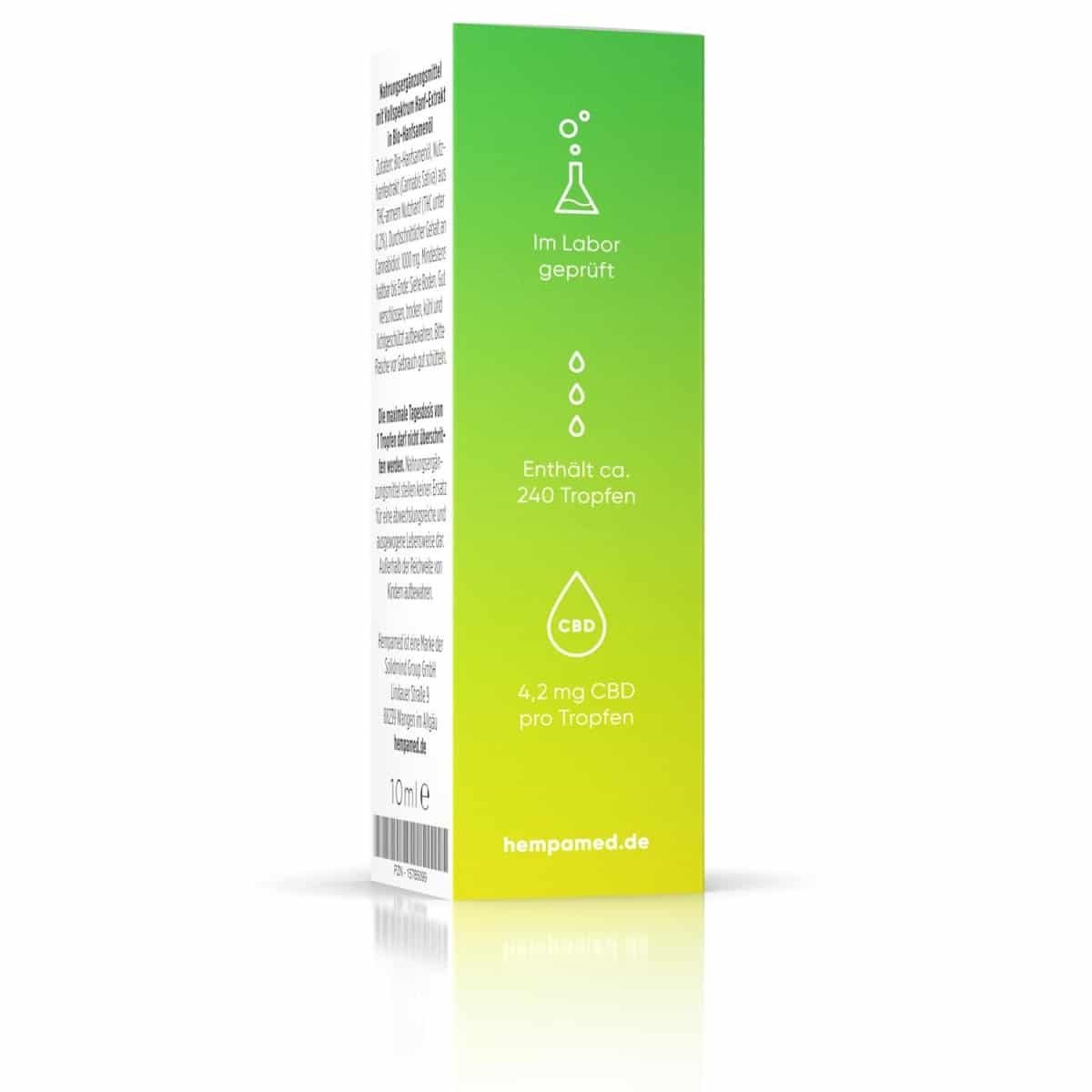 Selbstverständlich setzt Hempamed für das Premium CBD-Öl 10% von Hempamed auf eine reibungslose, qualitativ durchgängig hochwertige Produktion. Dazu gehört einmal die umfassende Prüfung der Extrakte und CBD Produkte durch Fachlabore. Dort gibt’s nicht nur ein Zertifikat für den Ausweis dieser Qualität, sondern auch sehr transparent alle Informationen für Verbraucher zu den Inhaltsstoffen. Natürlich ist Cannabidiol selbst dabei als hauptwirksames Präparat. Dazu finden sich Vitamine, Flavonoide und beim Vollspektrum Hanf auch THC, was aber immer nur in garantiert sehr geringer Dosierung vorhanden ist und deshalb für eine psychoaktive Wirkung nicht ausreicht.